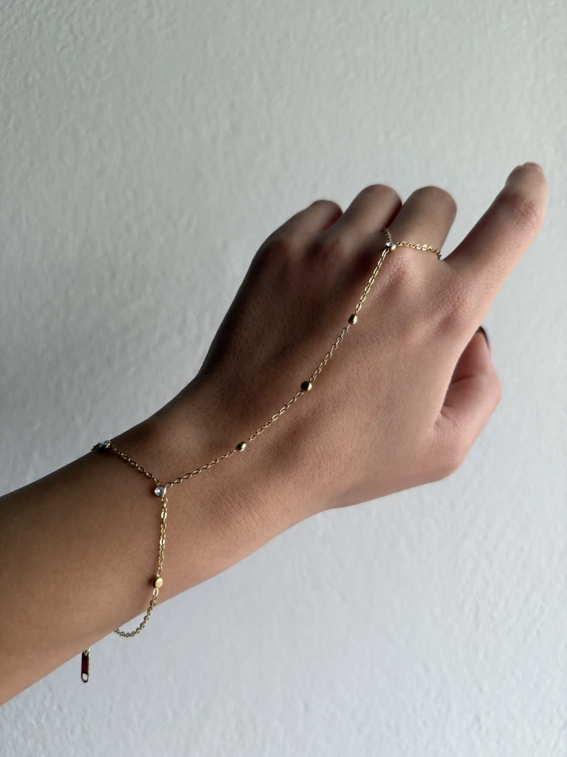 Το Luna Hand Chain Gold Bracelet είναι ένα κομψό κόσμημα που αγκαλιάζει το χέρι με διακριτικότητα και λάμψη. Η λεπτή αλυσίδα διακοσμείται με μικρές χρυσές μπίλιες και ενώνει αρμονικά τον καρπό με το δάχτυλο, δημιουργώντας ένα φίνο και ρομαντικό αποτέλεσμα. Ιδανικό για καλοκαιρινά looks, events, αλλά και για bridesmaids ή bridal εμφανίσεις.