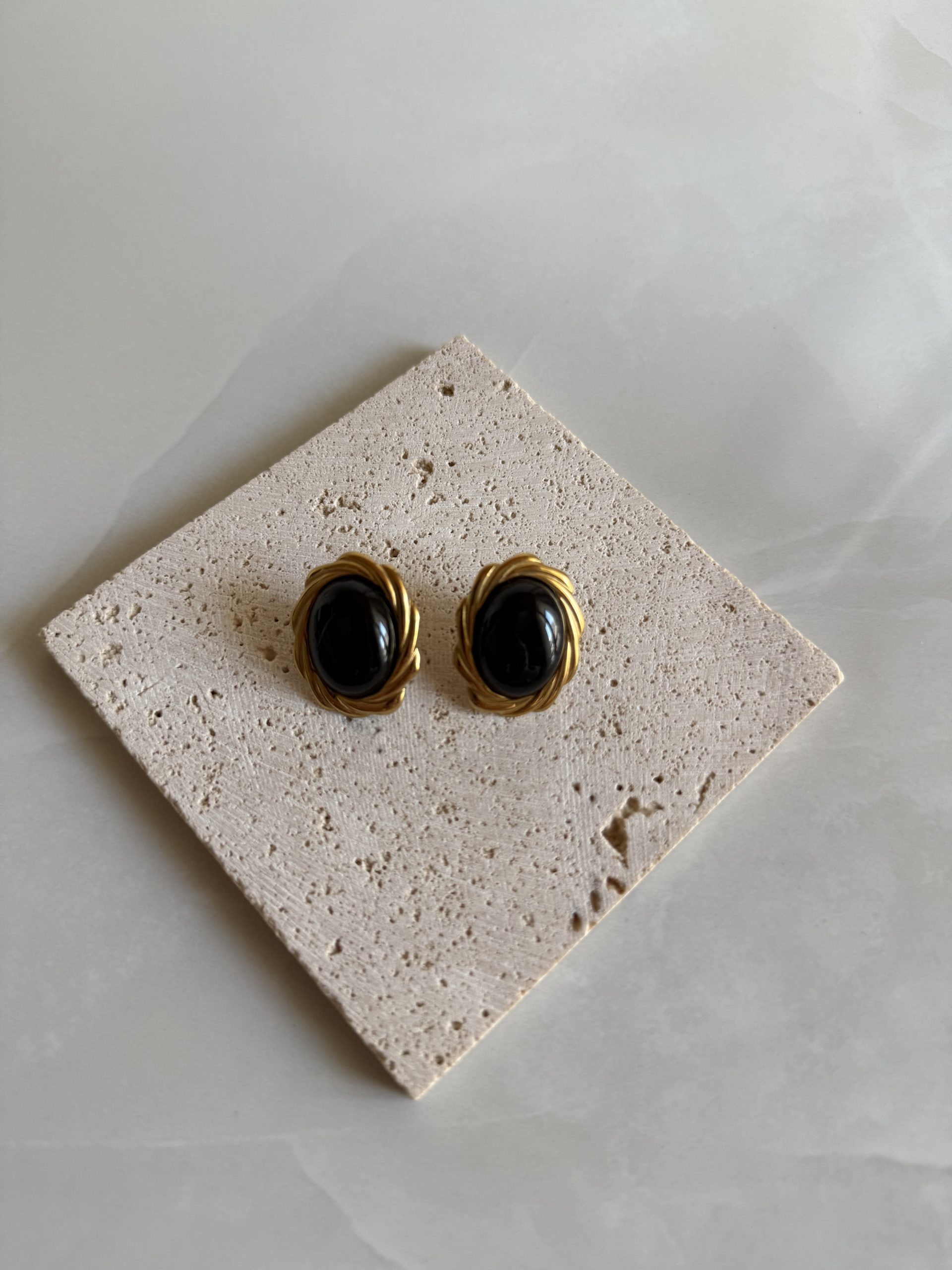 Τα Lunara Black earrings είναι κομψά και διαχρονικά σκουλαρίκια με oval πέτρα σε βαθιά μαύρη απόχρωση. Το πλεγμένο χρυσό πλαίσιο δημιουργεί μία όμορφη αντίθεση με το μαύρο, προσδίδοντας στο κόσμημα έναν sophisticated και elegant χαρακτήρα. Ο σχεδιασμός τους συνδυάζει vintage στοιχεία με σύγχρονη αισθητική, καθιστώντας τα ιδανικά για γυναίκες που αγαπούν τα minimal αλλά εντυπωσιακά κοσμήματα.