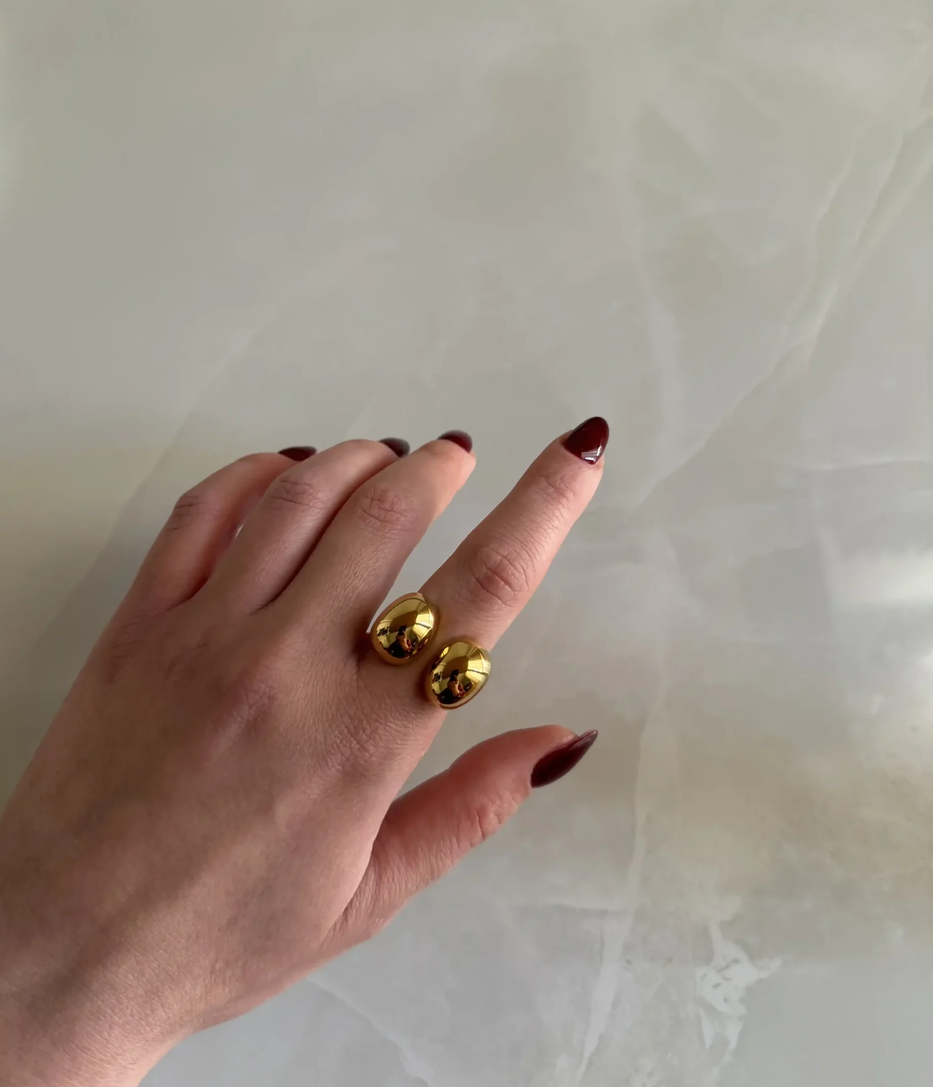 Το Solenne ring είναι ένα σύγχρονο sculptural δαχτυλίδι που αποπνέει δυναμική κομψότητα και καθαρή, μινιμαλιστική πολυτέλεια. Ο διπλός θολωτός σχεδιασμός του δημιουργεί έναν συμμετρικό, έντονα γυαλιστερό όγκο που αντανακλά το φως σε κάθε κίνηση. Η λεία, καθρέφτης επιφάνειά του προσδίδει μοντέρνα αισθητική με fashion-forward χαρακτήρα, ενώ η χρυσή απόχρωση ενισχύει τη διαχρονικότητα του κοσμήματος. Παρότι είναι statement, παραμένει ευκολοφόρετο και ισορροπημένο. Το Solenne είναι το δαχτυλίδι που δεν χρειάζεται layering. Στέκεται μόνο του καθαρό, γεωμετρικό, αποφασιστικό.