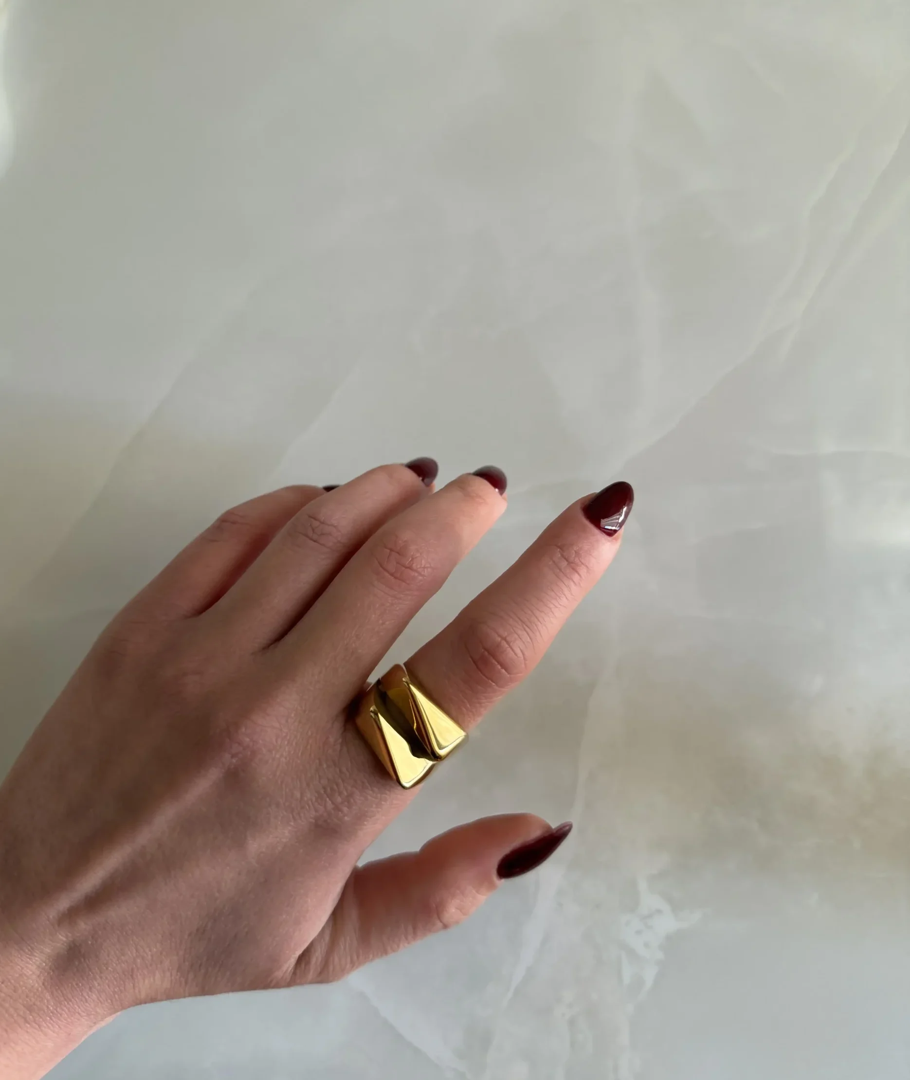 Το Zarel ring είναι ένα bold statement δαχτυλίδι με γεωμετρικό, αρχιτεκτονικό σχεδιασμό. Οι καθαρές του γραμμές και οι έντονες γωνίες δημιουργούν ένα δυναμικό, σύγχρονο αποτέλεσμα που θυμίζει mini sculpture. Η γυαλιστερή χρυσή επιφάνεια αντανακλά το φως με ένταση, ενισχύοντας τον structured χαρακτήρα του. Είναι ιδανικό για minimal outfits που χρειάζονται ένα δυνατό focal point. Ένα κομμάτι που αποπνέει αυτοπεποίθηση και μοντέρνα πολυτέλεια.